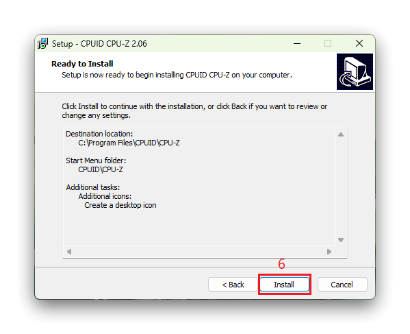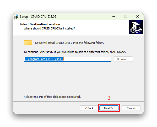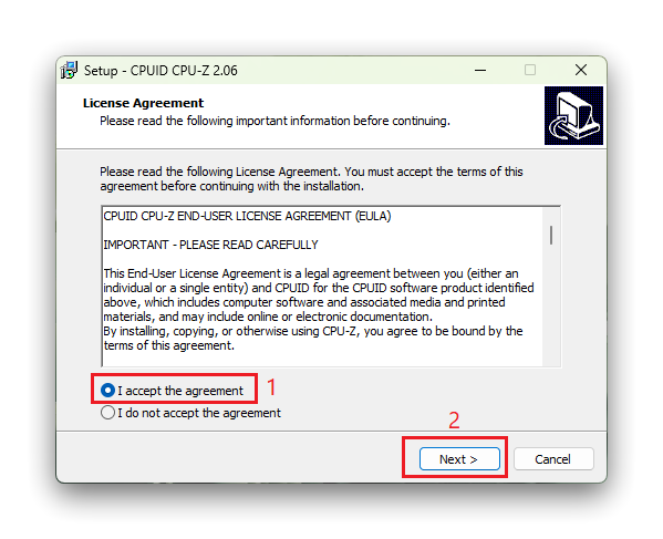 Berikut proses install CPU-Z (Perhatikan kotak merah disetiap gambar dibawah ini):