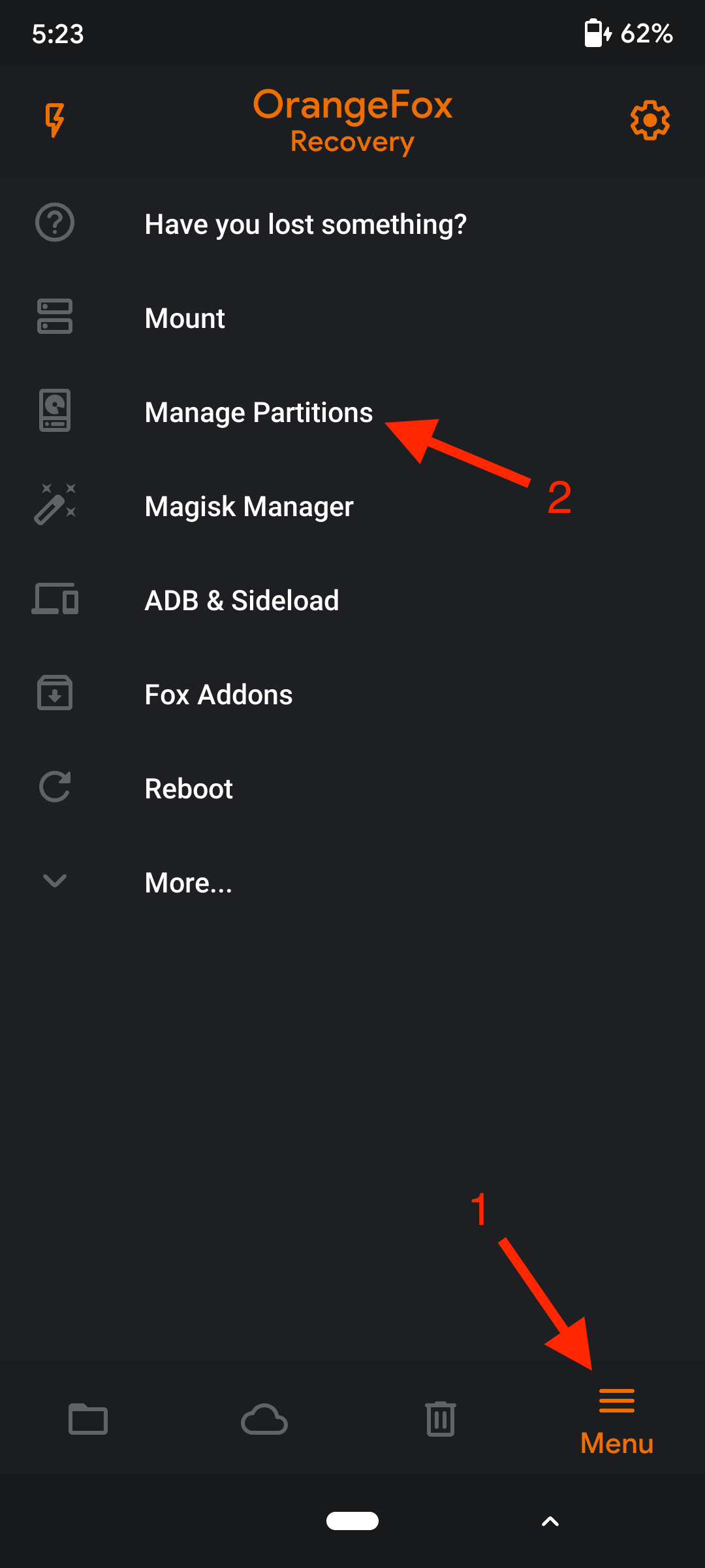 Contoh saya menggunakan Custom Recovery OrangeFox