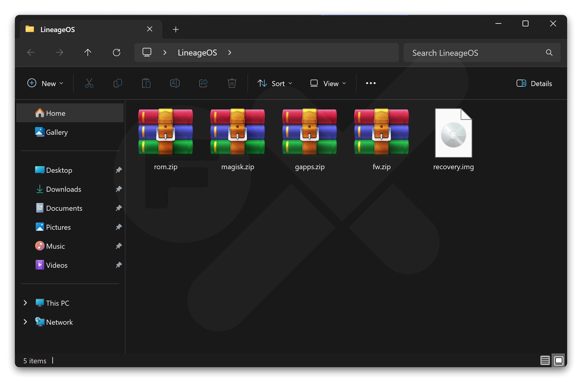 Pastikan semua syarat diatas sudah terpenuhi, dan semua file yang sudah di download simpan dalam 1 folder, contoh nama folder “LineageOS”.