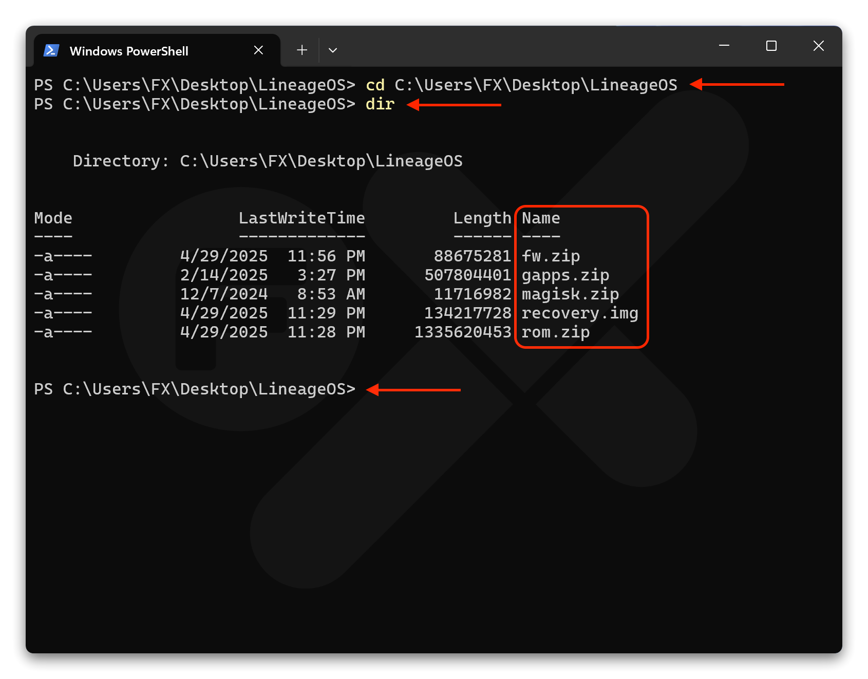 cdspasi lalu drag & drop folder LineageOS ke Terminal/CMD lalu Enter -