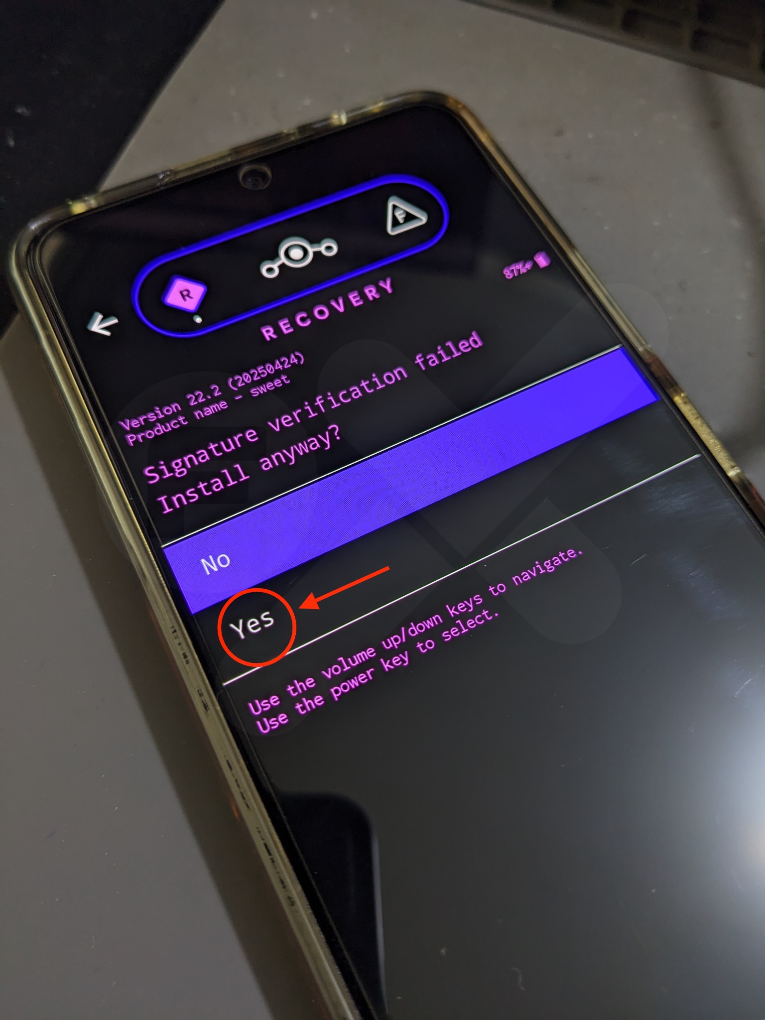 Rename ROM:lineage-xx.x-xxxx-nightly-sweet-signed.zip➜rom.zip